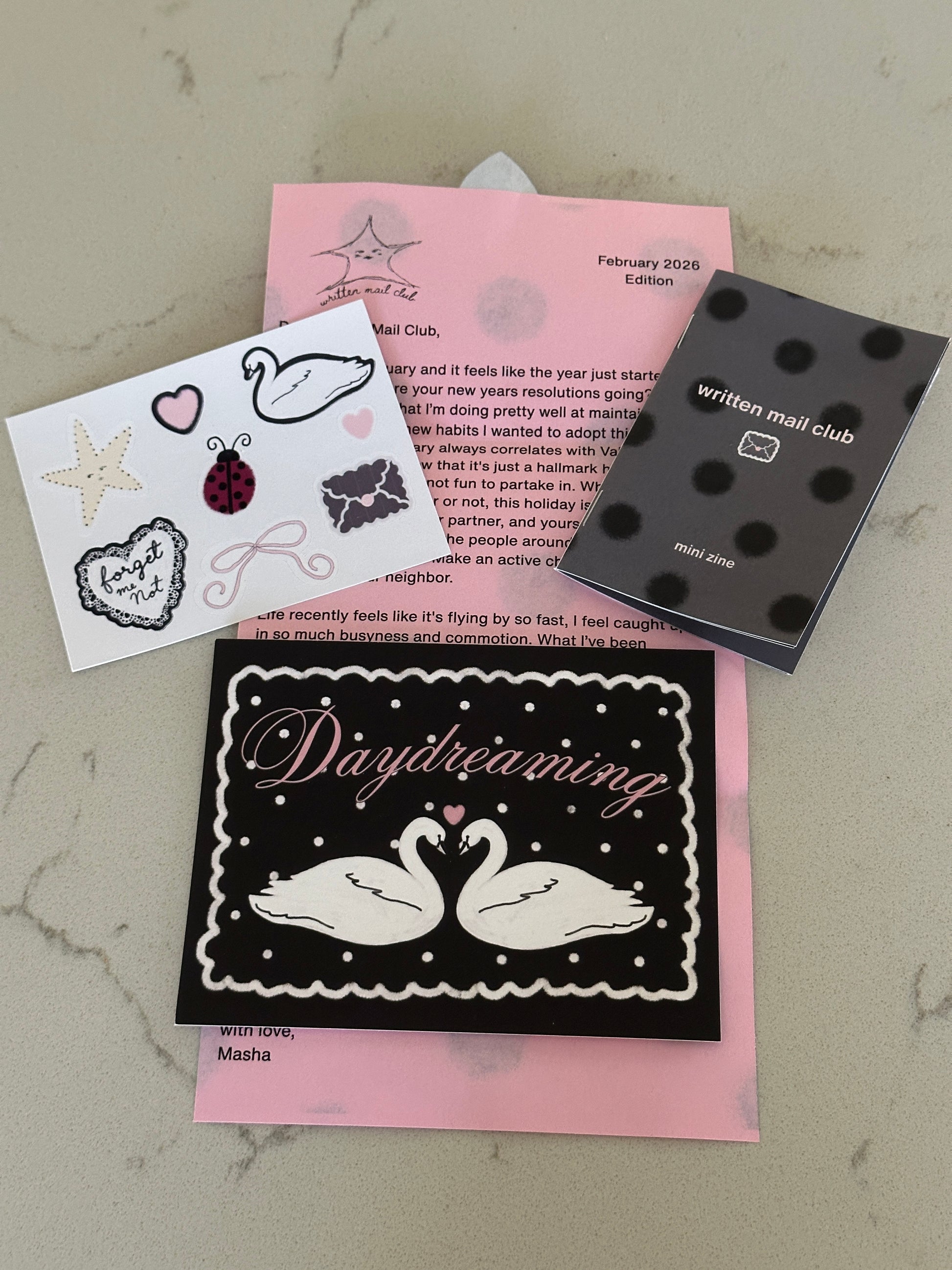 PLEASE READ: Ship date for ALL mail is the 14th! Orders made after the 14th of each month, will roll over to next month's design! Written Mail is sent via regular letter post (untracked shipping) each month. If you haven't recieved your letter within 4 weeks of the send date, please reach out via email, writtenstationery.com@gmail.com, or contact me throught the contact page.